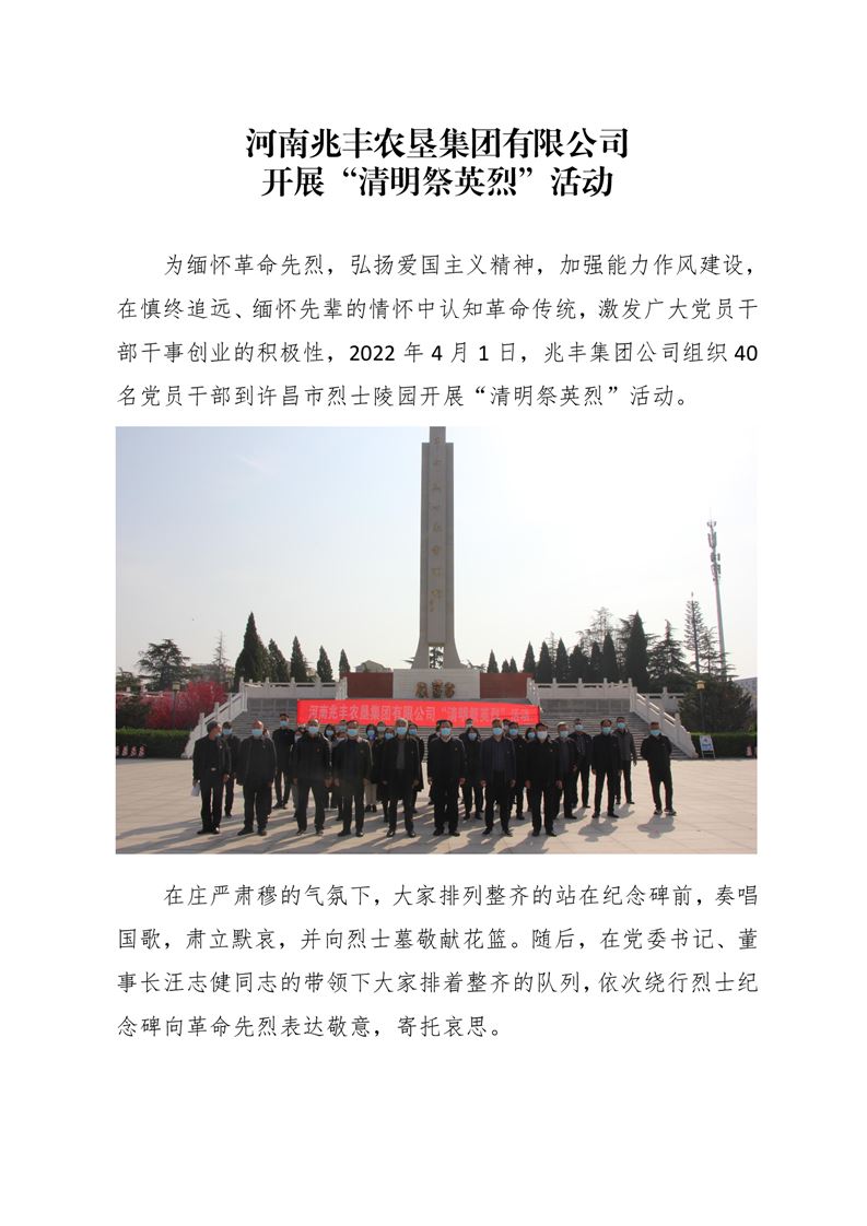 · 河南兆豐農(nóng)墾集團(tuán)有限公司 開展“清明祭英烈”活動(dòng)