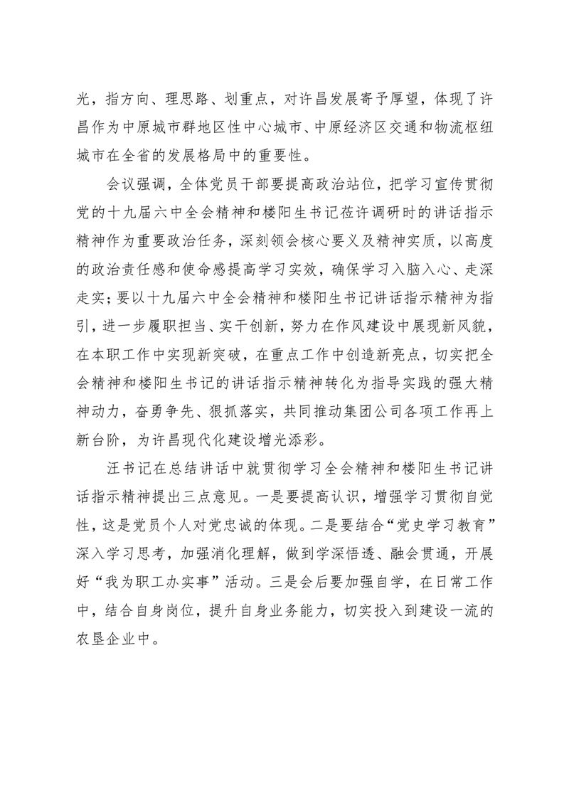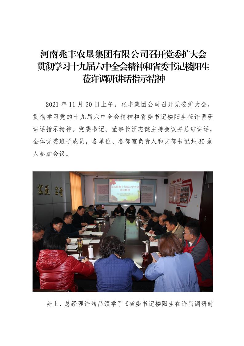 · 河南兆豐農墾集團有限公司 貫徹學習十九屆六中全會精神
