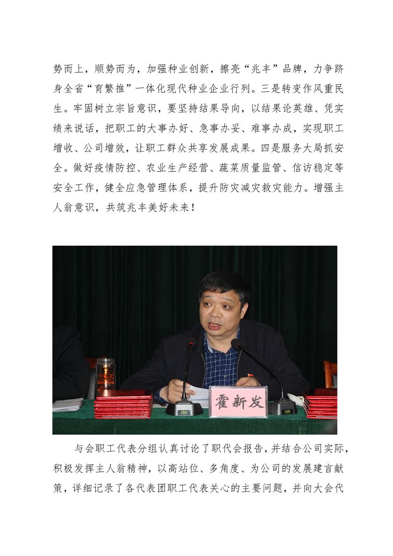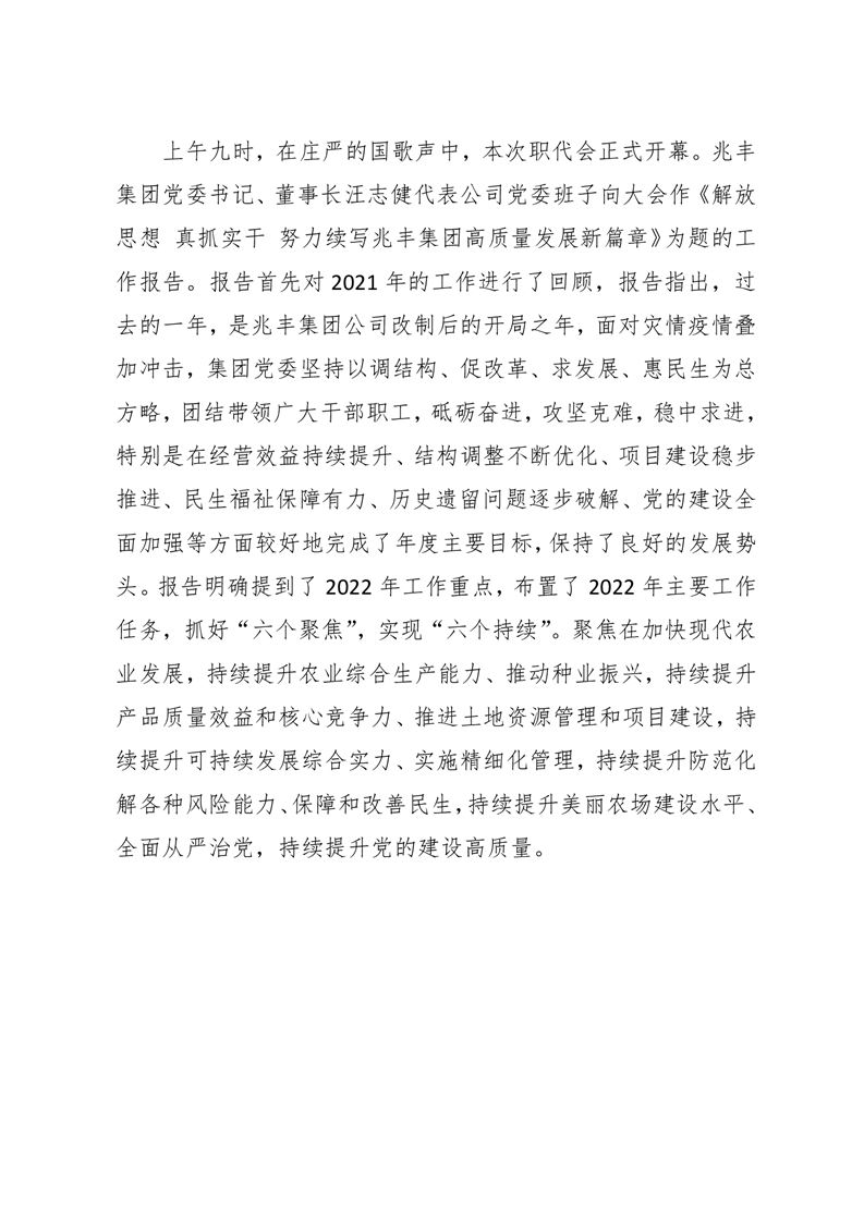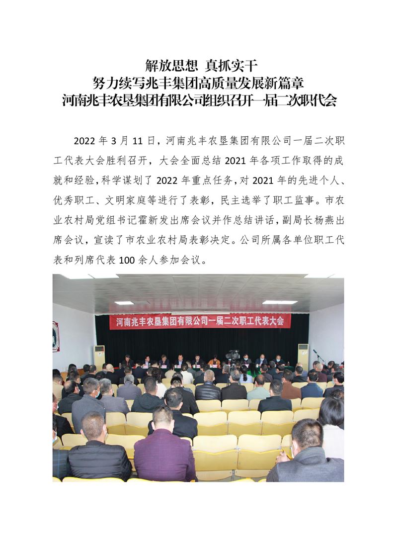 · 解放思想 真抓實(shí)干 努力續(xù)寫兆豐集團(tuán)高質(zhì)量發(fā)展新篇章 河南兆豐農(nóng)墾集團(tuán)有限公司組織召開一屆二次職代會(huì)