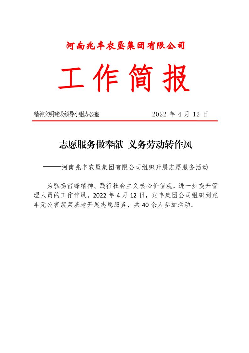 · 志愿服務做奉獻 義務勞動轉作風 ——河南兆豐農墾集團有限公司組織開展志愿服務活動