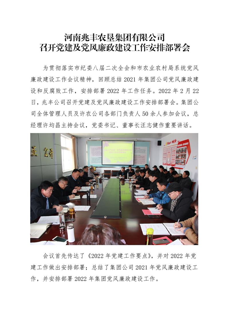 · 河南兆豐農墾集團有限公司 召開黨建及黨風廉政建設工作安排部署會